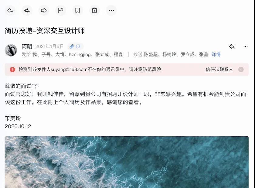 使用网易灵犀办公客户端,当收到不在个人通讯录或企业通讯录内的陌生发件人来信时,会在读信页明显提示用户该邮件为陌生人来信,提醒用户注意识别风险,有效防止因钓鱼邮件、诈骗邮件而导致个人或公司财产损失。