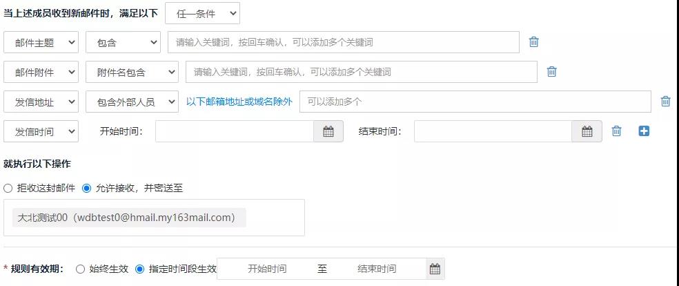 面对无孔不入的垃圾邮件,邮箱管理员可以根据团队实际收信情况,配置更加细致的收信过滤策略,直接降低高危邮件的入侵风险。